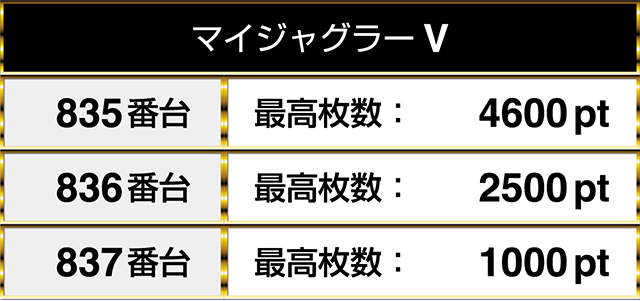 1日を通したデータをみると、835番台から837番台までに4600pt、2500pt、1000ptが並ぶ!!