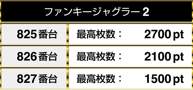 『ファンキージャグラー2』にも3台が並んで1000pt以上を記録する場所があった。