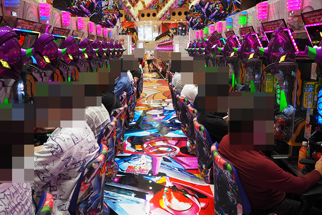 パチンコで最多となる30台が設置されているにもかかわらず、確認時はほぼすべての台が稼働。シマ内は大にぎわいとなっていた。