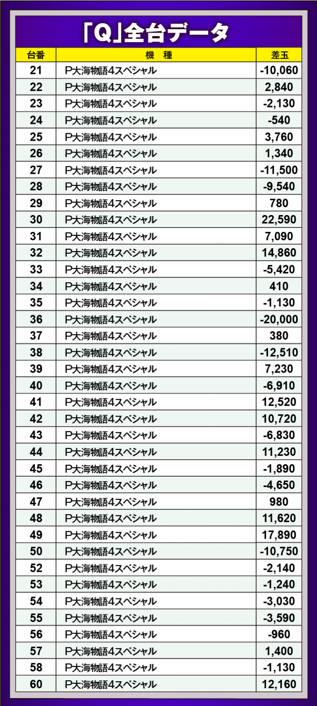 パチンコでは前回に引き続き『P大海物語4スペシャル』が、盛り上がりを見せていた。各所で万発OVERが発生する中、30番台+22,590玉を筆頭に、いたるところで大当りを継続させていく光景が目立った。きっちりと38台総差玉をプラス差玉で終え、人気機種らしい活躍を誇示していたのも見逃せないところである。