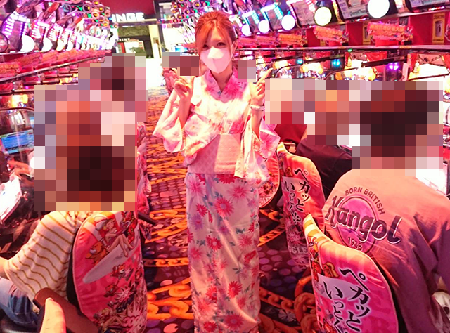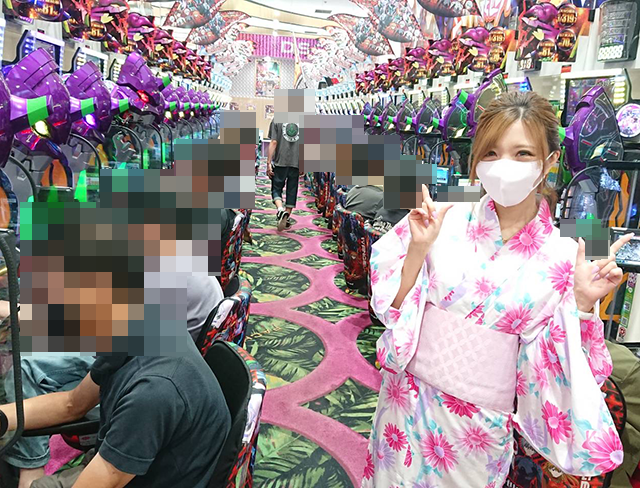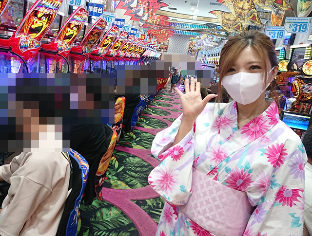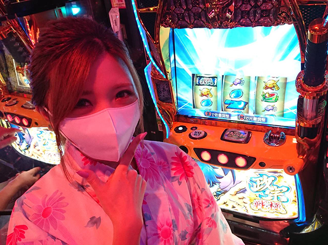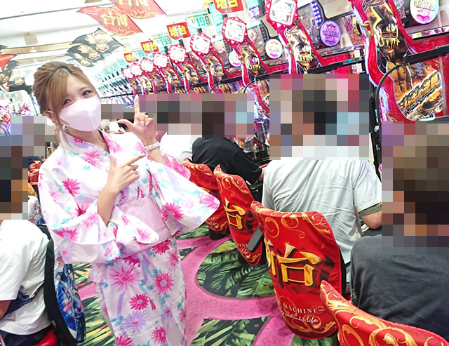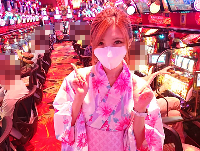 ホール全体が盛況となっているなかで、ひかるちゃんはパチスロで実戦開始!
