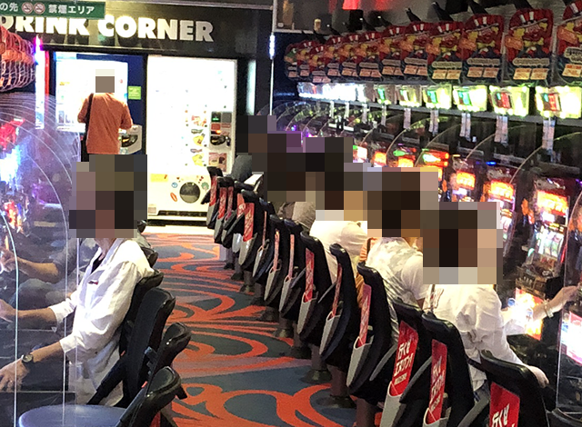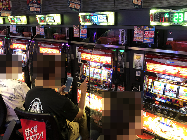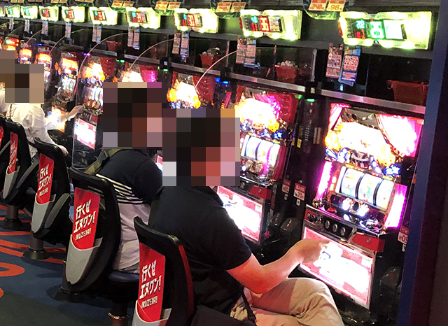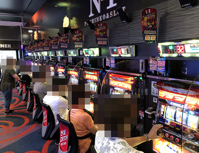 8月7日は多くのプレイヤーが来店しており、パチンコとパチスロの両方がにぎわっていた。