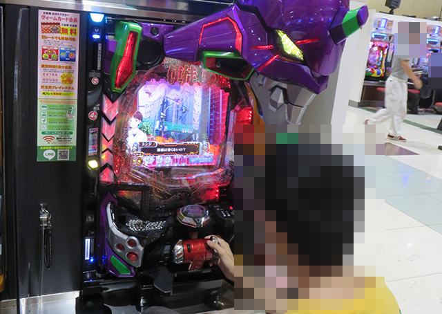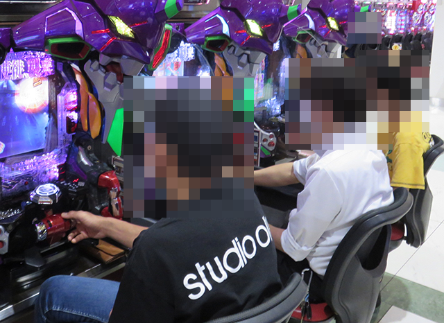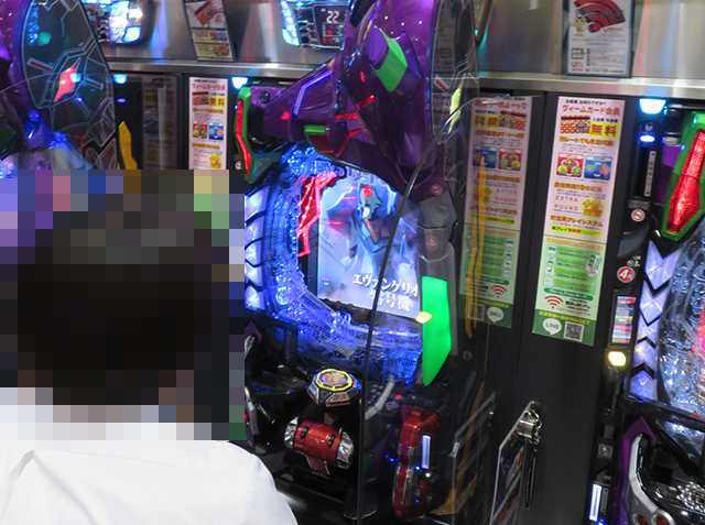 ホール内では、さまざまな機種に笑顔をみせている姿があった。