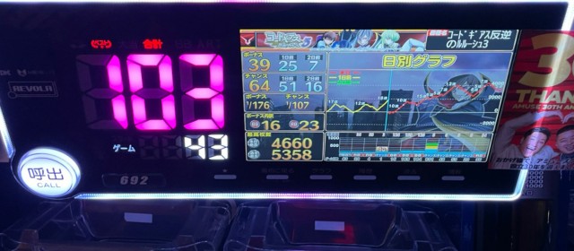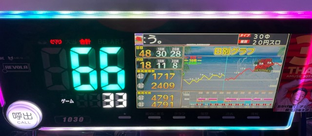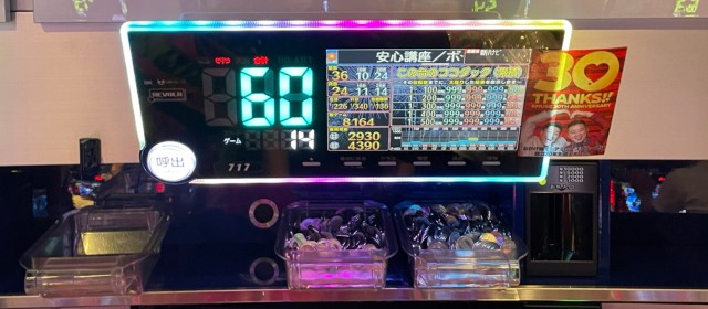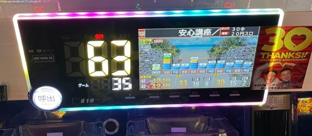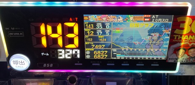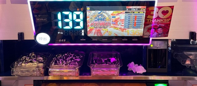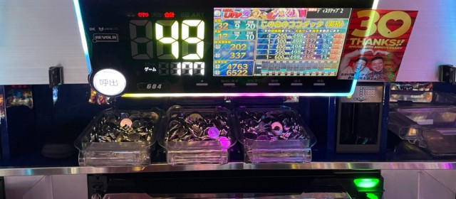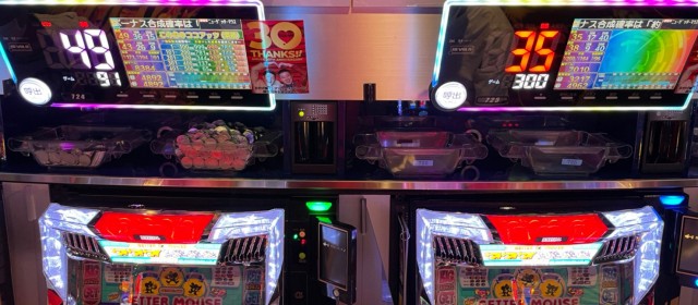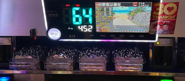 当日の20スロ全495台のトータル差枚数は+87,185枚と連続の+10万枚オーバーとはならなかったが依然高い数値をキープ。また評価ptは26と、こちらも前回よりもダウンしたがそのレベルは他店よりも抜きん出ている。また上写真のように、前回以上に後ろ積み台が多く目に付いた。多くのファンが満足そうな表情を浮かべていたのが印象深い。「ヒーローズレポート」復活からこれで4連勝、次回のトータルプラスも揺るぎないだろう。