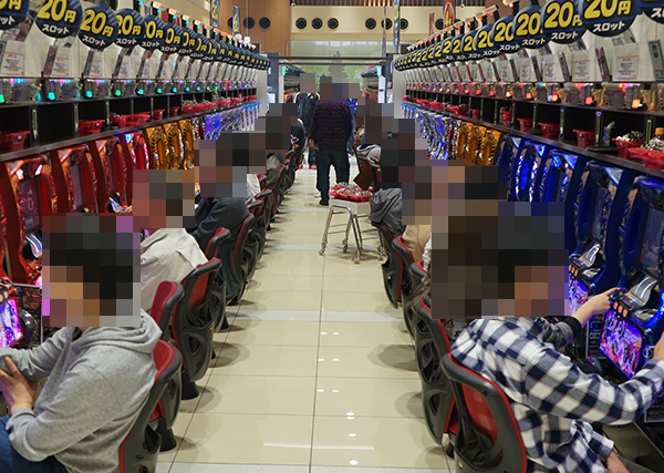 低貸し玉で遊技を楽しんでいる人も多く、パチンコ・パチスロのどちらのコーナーにも笑顔が広がっていた。