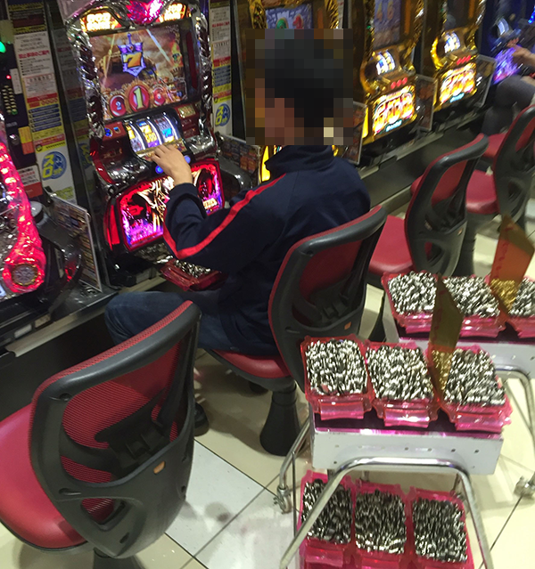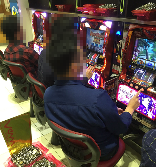 夕方を過ぎた頃の20円パチスロでもっとも目立っていたのは「SLOT魔法少女まどか☆マギカ」。機種の性能を最大限に引き出しているプレイヤーの姿があり、2日目の取材のなかでトップクラスの活気が感じられた。