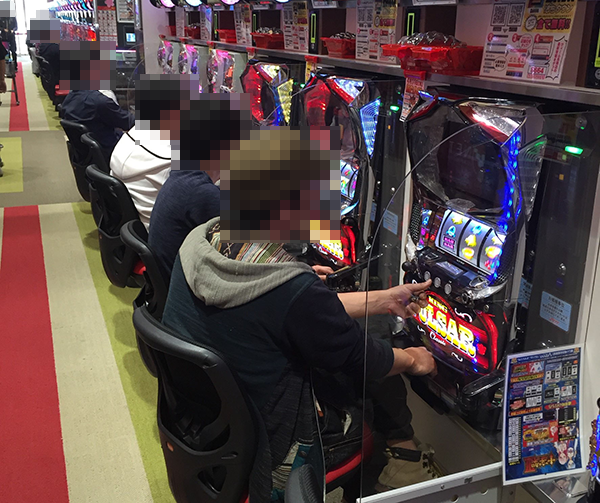 14時を過ぎた頃の20円パチスロをみると、「沖ドキ!」や「ハナハナ鳳凰-30」などの沖スロコーナーが大盛り上がり。機種の性能を上手に引き出しているような姿も多く、シマ内には華やかな光景が広がっていた。