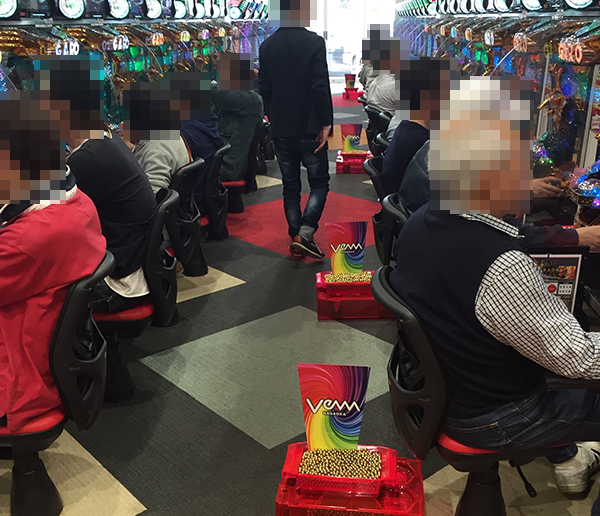 4円パチンコでは、「CR牙狼 魔戒ノ花」と「ぱちんこCR真・北斗無双」が盛況。遊技をしているプレイヤーたちは上機嫌な様子で、その姿からは楽しい時間を過ごせていることが伝わってきた。