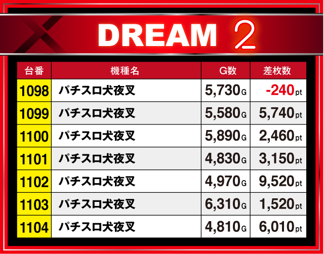 ナ:そうなんです! 文句なしの稼働に加えて1102番台が差枚数で9520枚獲得されていました。他にも5000枚オーバーが2台あったりと『パチスロ犬夜叉』のシマは、当日イチ活気がありましたね。