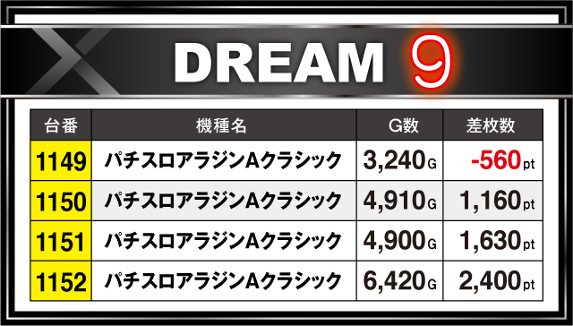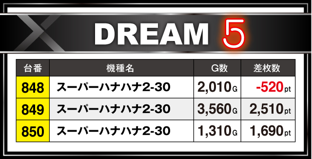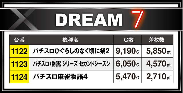 メイン機種を中心に、最新台からバラエティまで幅広いジャンルより結果が出た第1回「エクスドリーム73」。