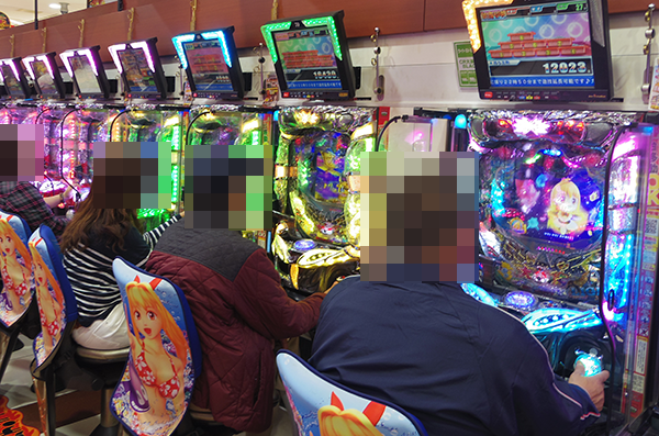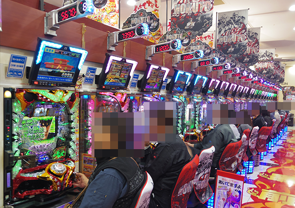 16時頃の4円パチンコでは、「ぱちんこCR真・北斗無双」がほぼ満席と大人気。