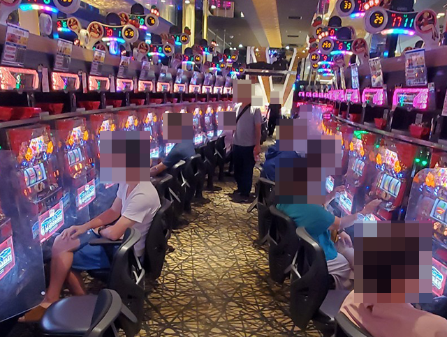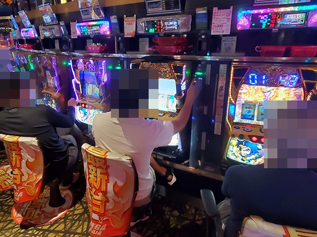 取材時に稼働していたのは22台で、たくさんのプレイヤーが遊技を楽しんでいた。