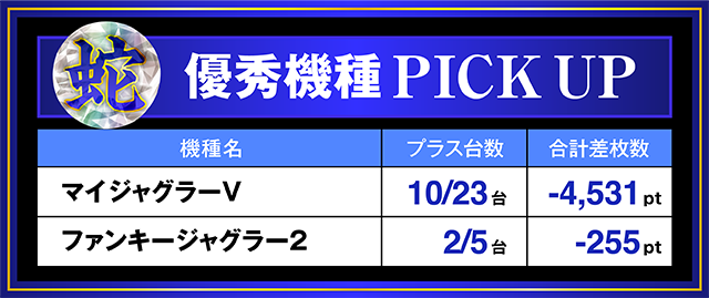 「ファンキージャグラー2」にも注目したい台が、5台中3台と多数。
