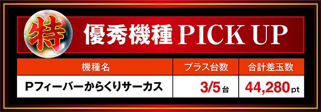 766番台から770番台までの5台が連続して+1,000ptオーバー! 「パチスロ犬夜叉」と「パチスロ甲鉄城のカバネリ」には+5,000ptを上回る台があった。