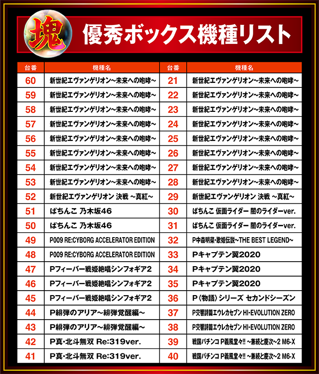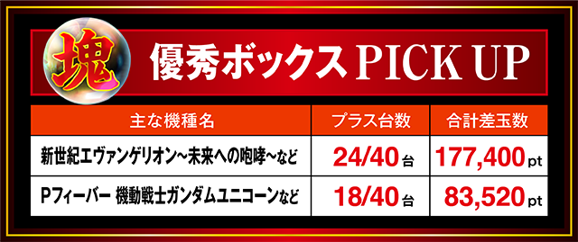 「新世紀エヴァンゲリオン~未来への咆哮~」などが設置されているボックスは、6割の台がプラス。+10,000pt超えたのは12台とボリュームのある結果を残した。