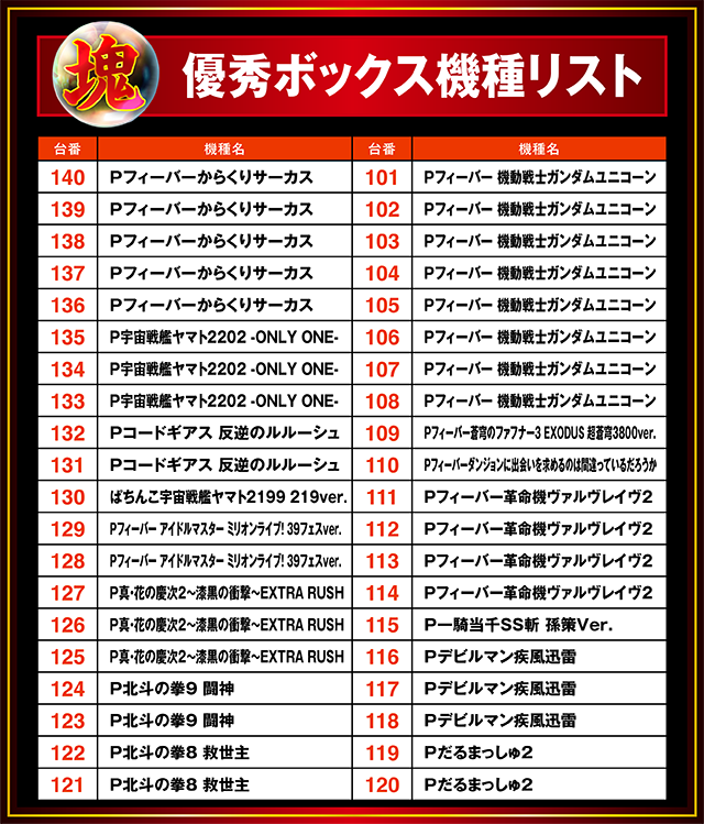 「P宇宙戦艦ヤマト2202 -ONLY ONE-」の133番台や「Pフィーバー 機動戦士ガンダムユニコーン」の108番台が+35,000pt超となるなど、随所に笑顔がみられた。