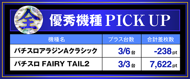 「パチスロ FAIRY TAIL2」と「パチスロ 新鬼武者2」も複数台が+2,000ptを超えた。