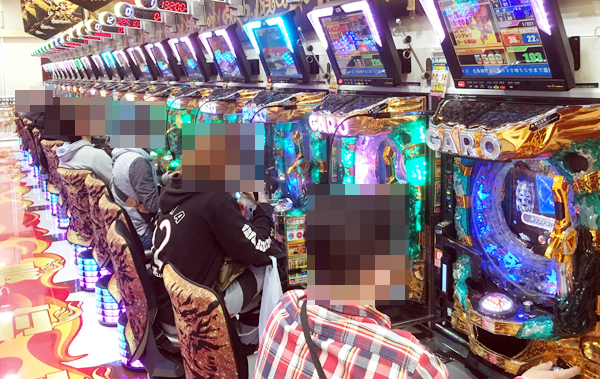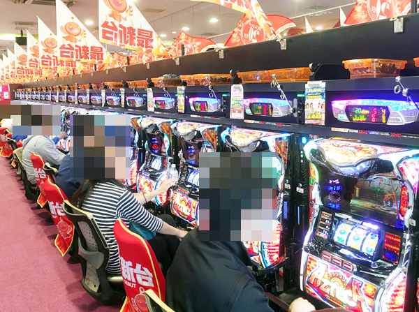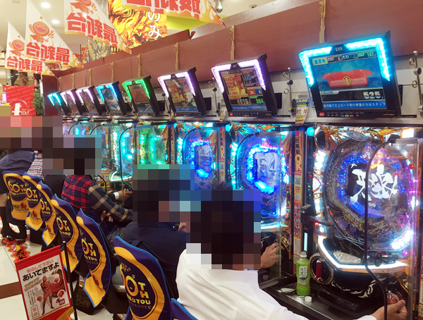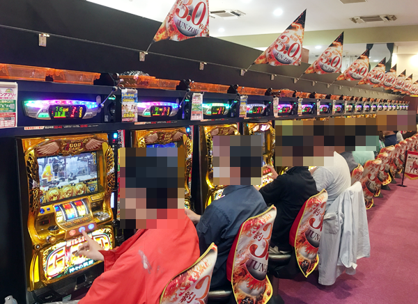 ホール内の様子をみてみると、パチンコ・パチスロコーナーともにたくさんのプレイヤーが集まり、大きなにぎわいをみせていた。