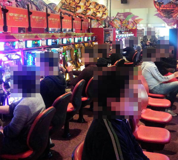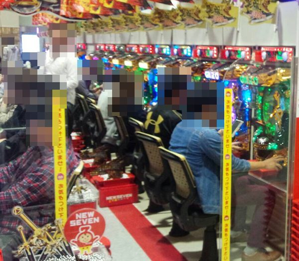 続いて、2店舗目となる「夢広場ニューセブン利府街道店」の様子をのぞいてみると、4円パチンコの「CR牙狼 魔戒ノ花」や「ぱちんこCR真・北斗無双」で遊技を楽しんでいる人が多く、空席も少ない。