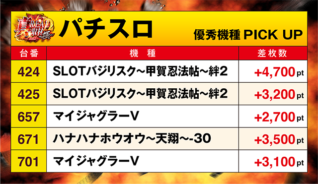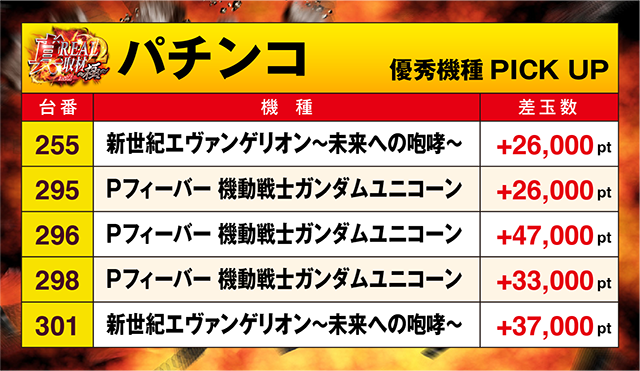3台が+20,000ptを超え、+47,000ptとなった台もあるなど、みどころは多かった。