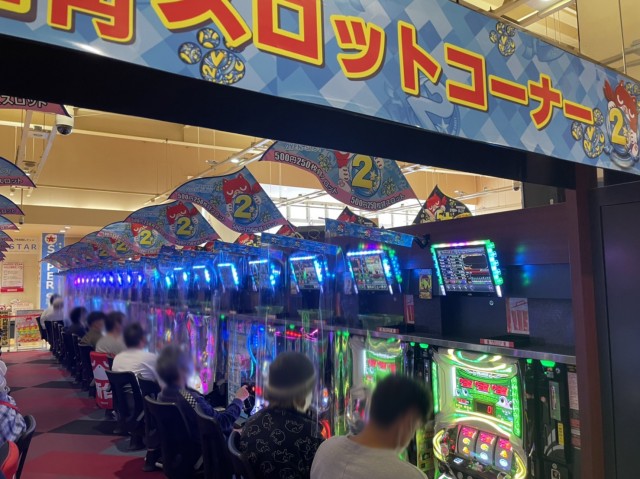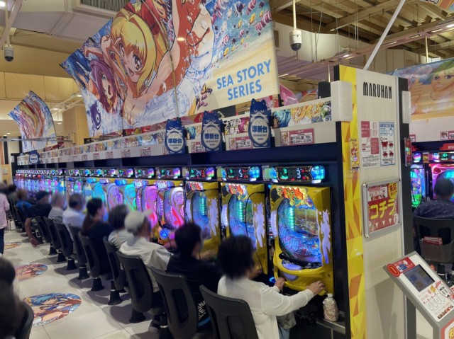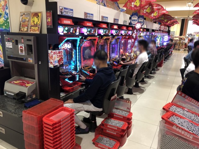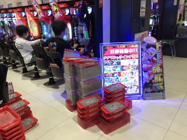また、後者は今回パチンコに絞って密着したが比較的導入間もない機種が大量のドル箱でタワーを築いていたのが印象的だった。