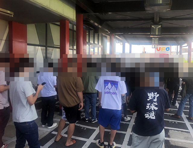 朝イチの入場抽選に集まったのは100名以上。さまざまなホールに支持が分散しがちな週末においても、たくさんのプレイヤーが集まっていた。