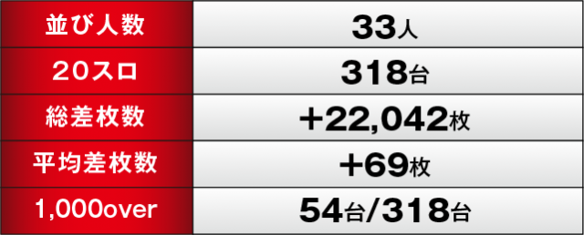 優秀台、ピックアップ機種の活躍もあって、総差枚数+22,042枚という結果で1日を終えた。連勝を継続したことにより、ますます同店の勢いは増していくはず!次回以降の「ヒーローズレポート」でも、連勝はもちろん、同店としても差枚数プラスを狙って積極的であるため、今後も情報を逐一チェックし、しっかりと準備しておくことをオススメするぞ!