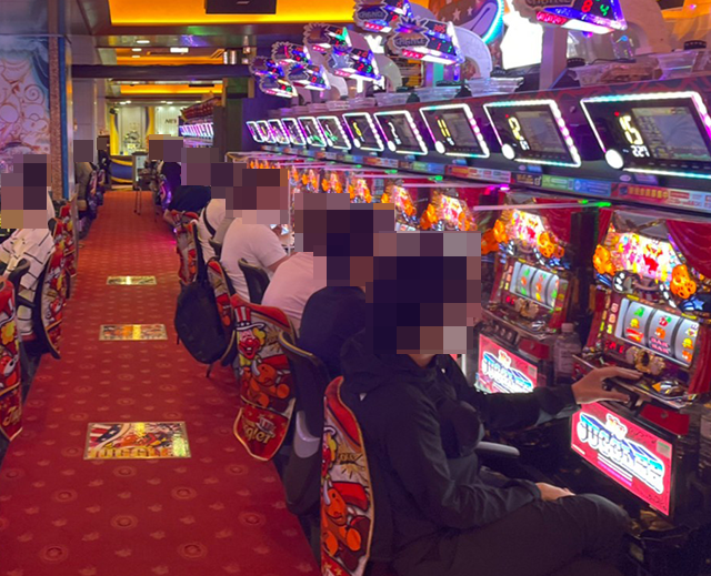 人気があるうえに盛り上がりも大きい『マイジャグラーV』には、目をひかれる場面が多かった。
