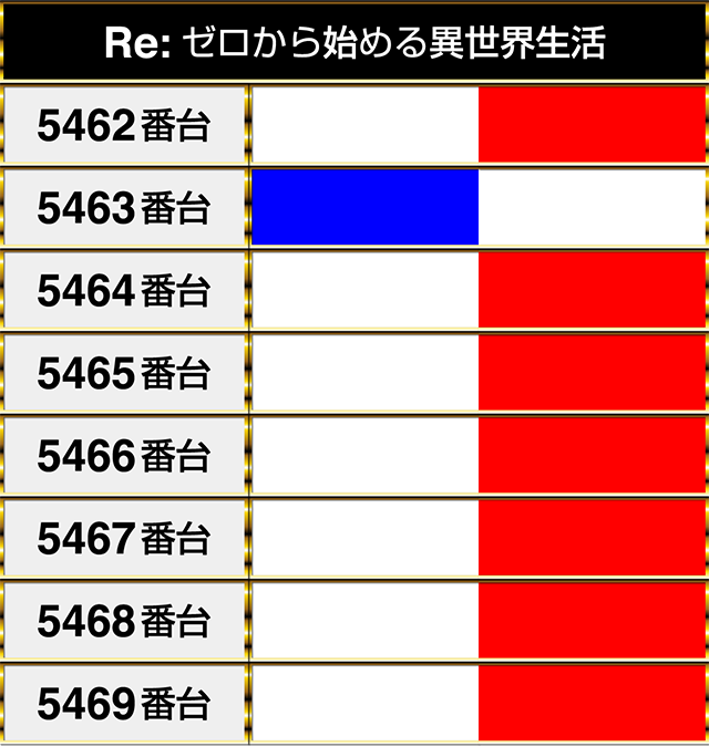 8台設置の『Re:ゼロから始める異世界生活』は6台が連なってプラスptとなった。