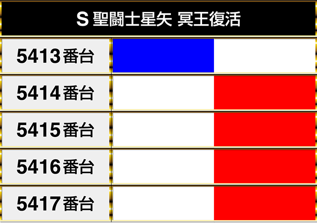 『S聖闘士星矢 冥王復活』は5台中4台が並んでプラスpt!