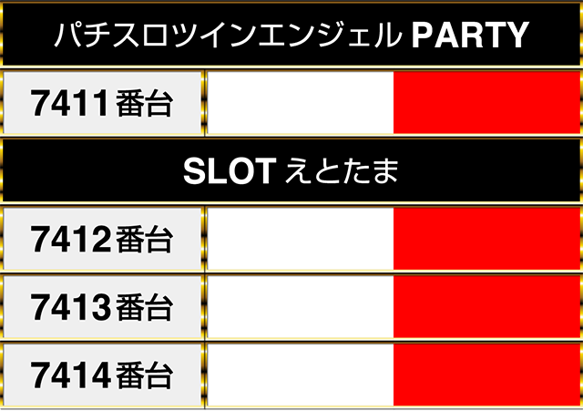 『パチスロツインエンジェルPARTY』の1台は『SLOTえとたま』の3台と連なってプラスptを記録した。