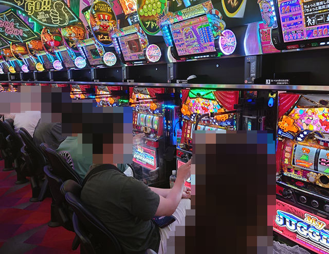 人気を集めていた『マイジャグラーV』にもプラスptが並ぶ場所があった。
