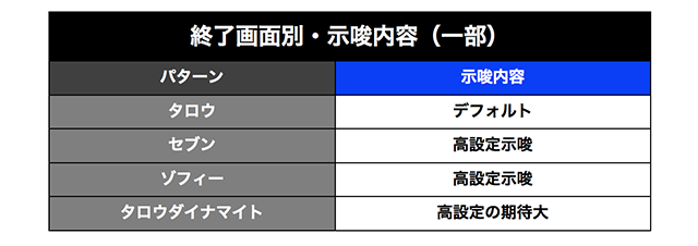 AT終了画面でチャンスボタンを押すと、設定示唆画面が表示。タロウダイナマイトならば高設定の期待大だ。