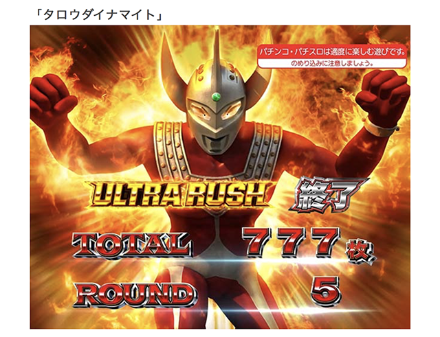 にぎわうパチスロコーナーで、とくに興味をひかれたのは「ぱちスロ ウルトラマンタロウ 暴君SPEC」だ。