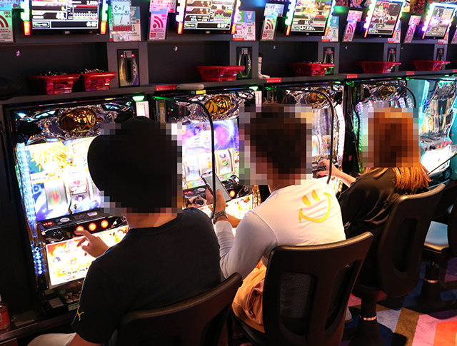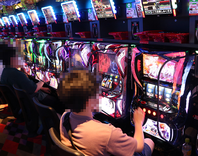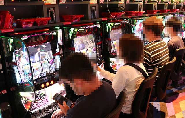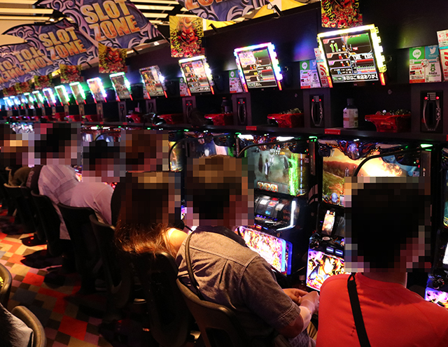 ぱちタウン取材班は朝からじっくりとパチスロコーナーを注視。