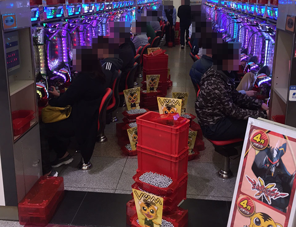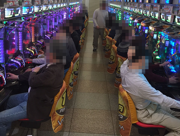 開店直後は4円パチンコに向かうプレイヤーが多く、新台の「ぱちんこCR真・北斗無双」がいち早く満席。