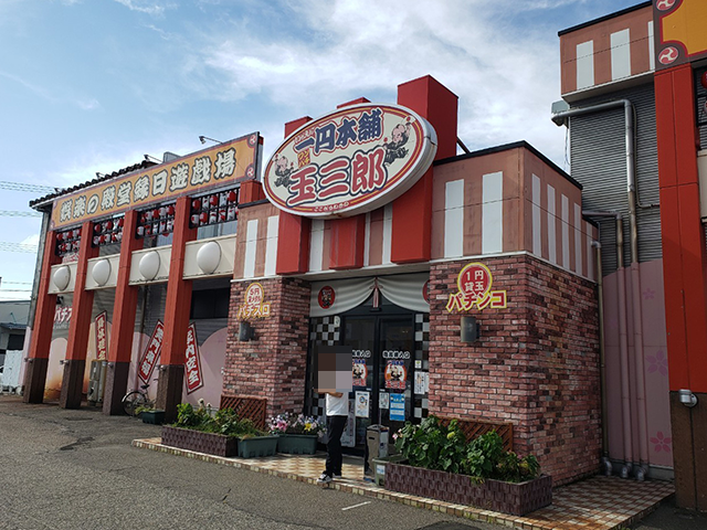 9月19日にむかったさきは、新潟県新潟市にある「パチンコ玉三郎竹尾店」。色鮮やかな装飾が多く、みためにも華やかな店舗だ。