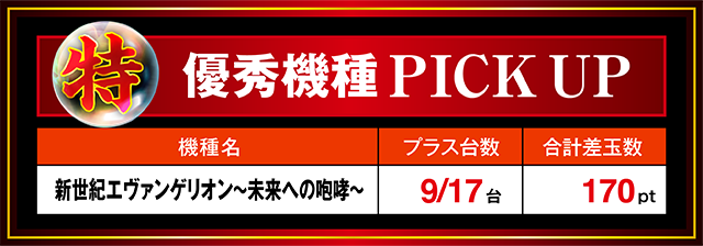 9台がプラスを記録し、機種トータルでもプラスとなった「新世紀エヴァンゲリオン~未来への咆哮~」!