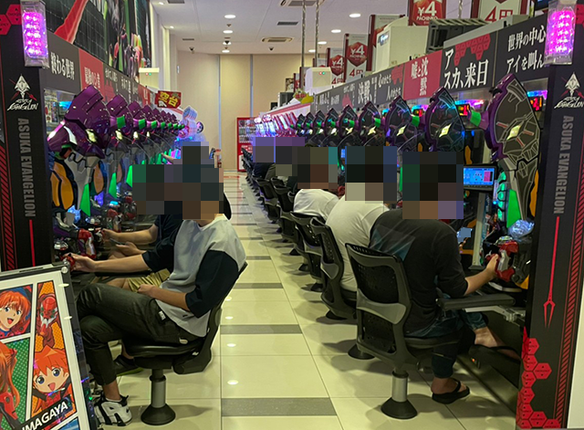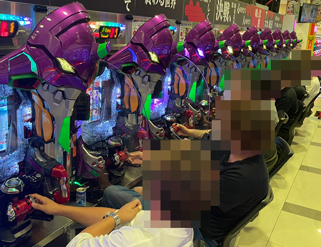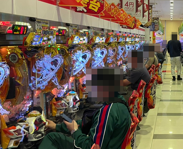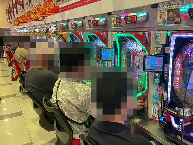 17時頃には、たくさんのプレイヤーが遊技を楽しむ光景を確認。消化ゲーム数は機種平均で6,100Gクラスと、長時間にわたって支持を集めていた。
