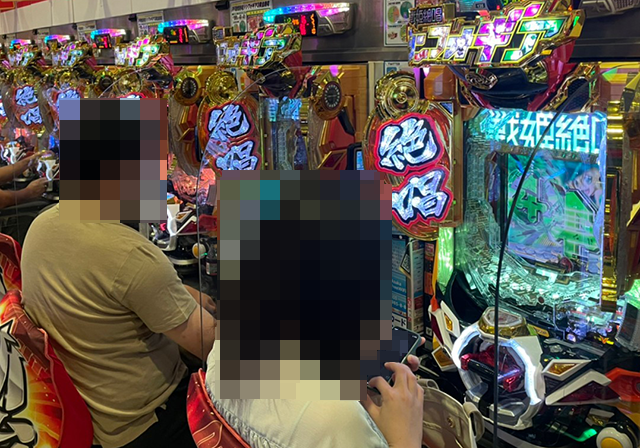 背を向けた場所にある「Pフィーバー 機動戦士ガンダムユニコーン」で印象に残っているのは、軽やかに遊技をおこなう姿だ。楽しい時間を過ごし、遊技を満喫している印象を受けた。