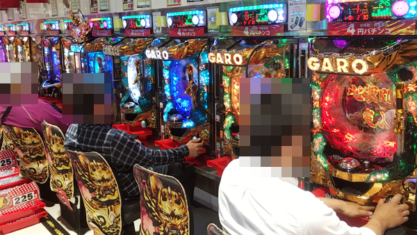 100円/25玉パチンコでは「CR牙狼 魔戒ノ花」や「ぱちんこCR北斗の拳6 拳王」、「CRリング 運命の日」といったMAXタイプが盛況。シマ内では多数のプレイヤーが笑顔を浮かべていた。