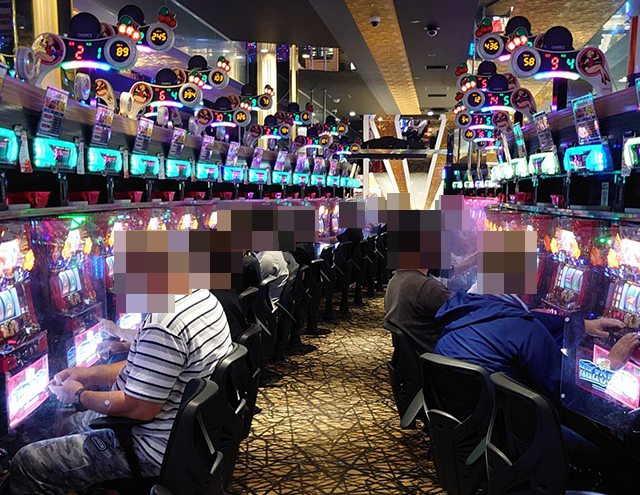 いくつもの場所で遊技を満喫しているような姿がみられた「メガガイア伊勢崎東」。