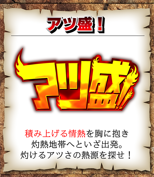 今回は、胸の内に情熱を積み上げているプレイヤーに捧げる「アツ盛」を実施!