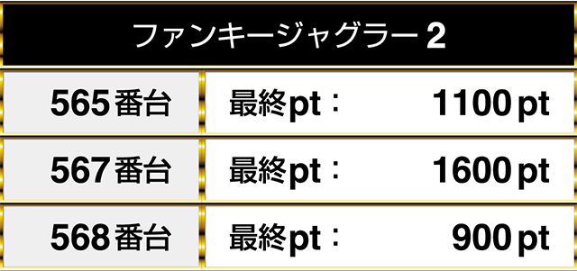 閉店時には設置されている5台のうち、3台がプラスptを記録した。