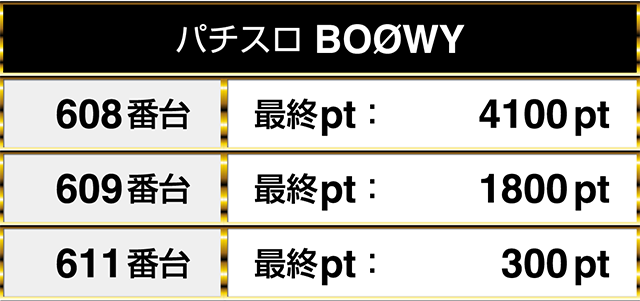 新台の『パチスロ BOØWY』は4台中3台がプラスptを記録し、1台は4000pt以上であった。