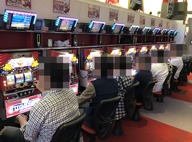 パチスロの状況をうかがうと、ボーナスタイプを中心に活気のある光景が広がっていた。