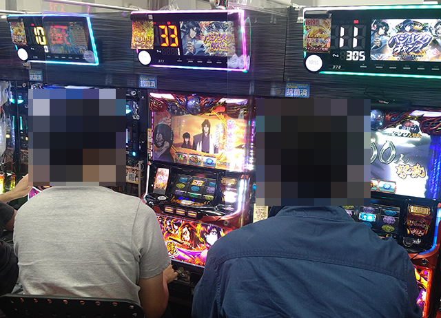 隣に設置されている「SLOTバジリスク~甲賀忍法帖~絆2」でも、プレイヤーは機種の性能を引き出している模様。