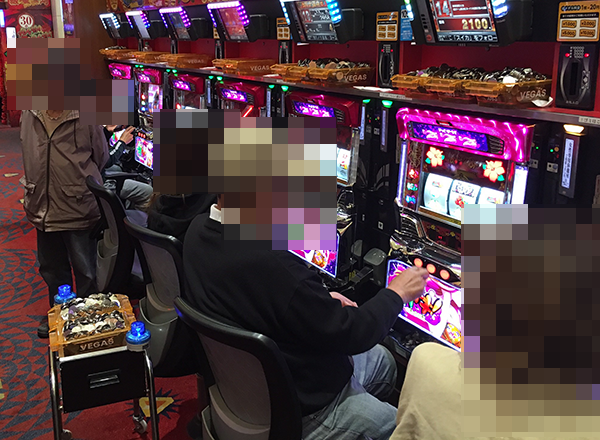 空き台がほとんど見当たらないほどの高稼働に加え、機種の性能を引き出しているといったプレイヤーも多数。シマ内は明るい笑顔で満ちた明るい空間となっていた。