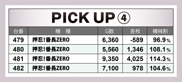 今回、[1000円/46枚] スロ全480台はトータル差枚数+9,414枚と、前回を超えることができなかったがこれで14連勝を達成。また一方で1,000overは全体の2割弱となり、大型店であるため実現が困難だろうがもっと数値が伸びて欲しいところ。その一方で、当日のデータには入らなかった機種でもドル箱を複数使用していた台を多々目にすることができた。次回「英雄」取材の際には差枚数・1,000over共によりハイスコアを目指しながらの連勝記録延長を目指してもらいたい!