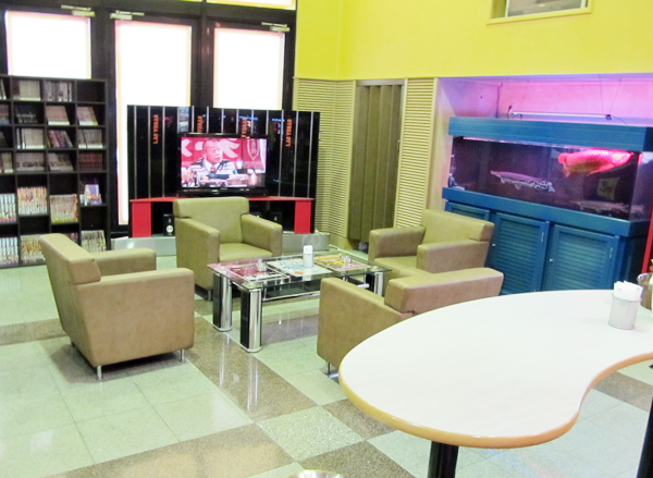 漫画本のあるレストスペースも過ごしやすく、熱帯魚のいる水槽などもよい雰囲気。